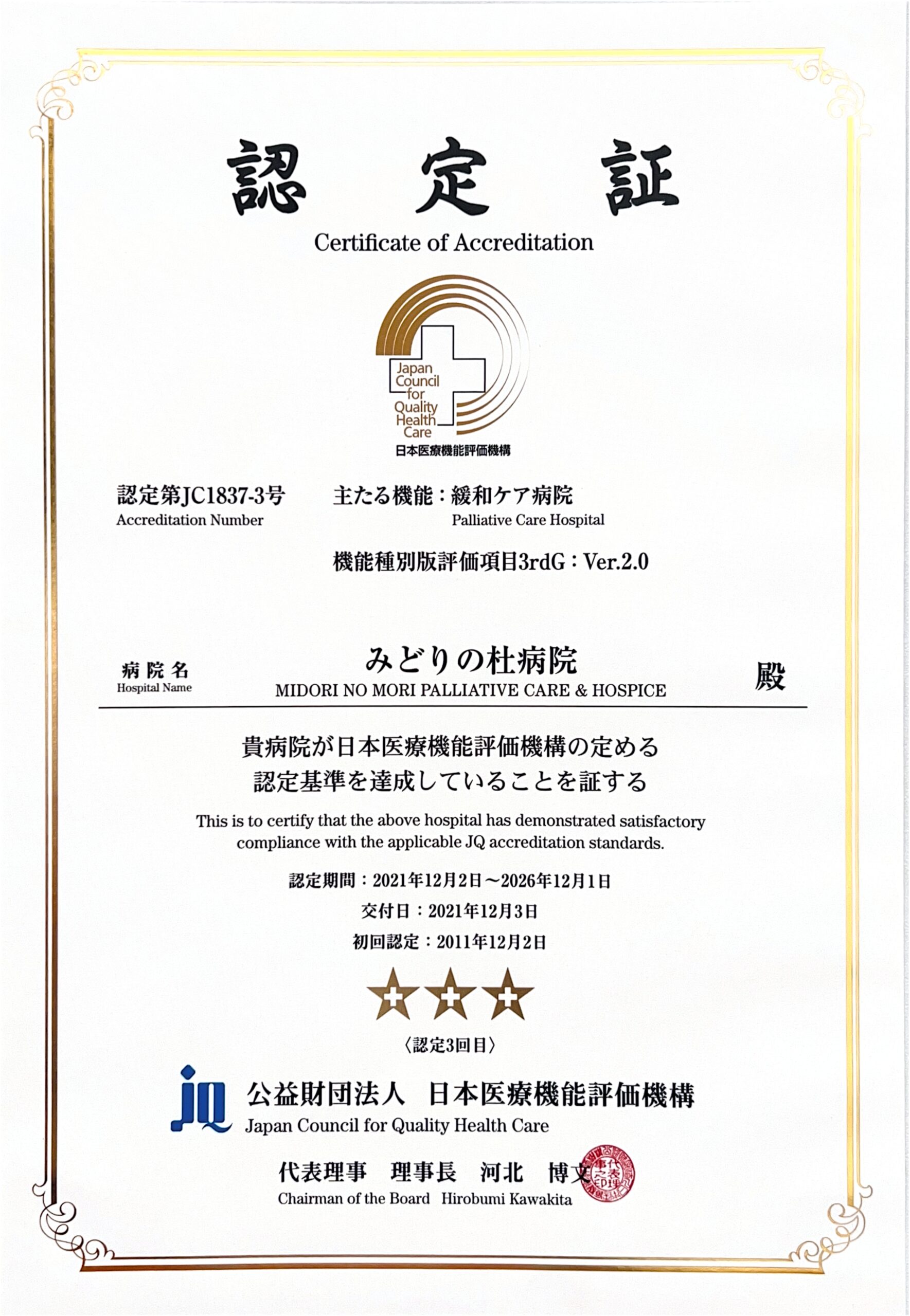 - 認定期間 : 2021年12月2日~2026年12月1日